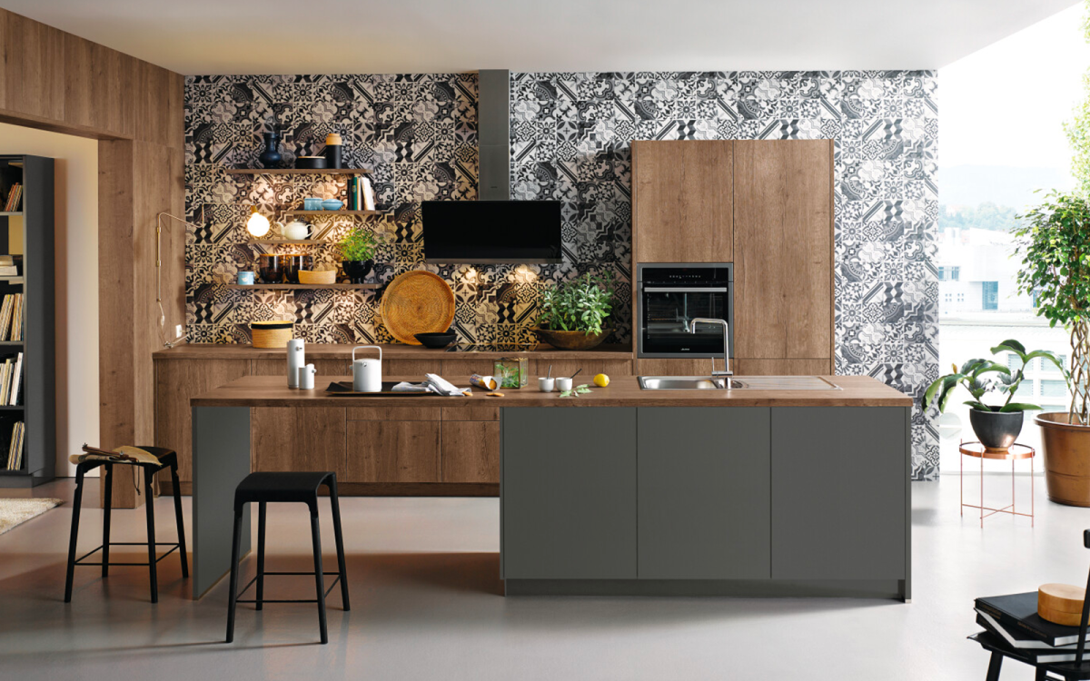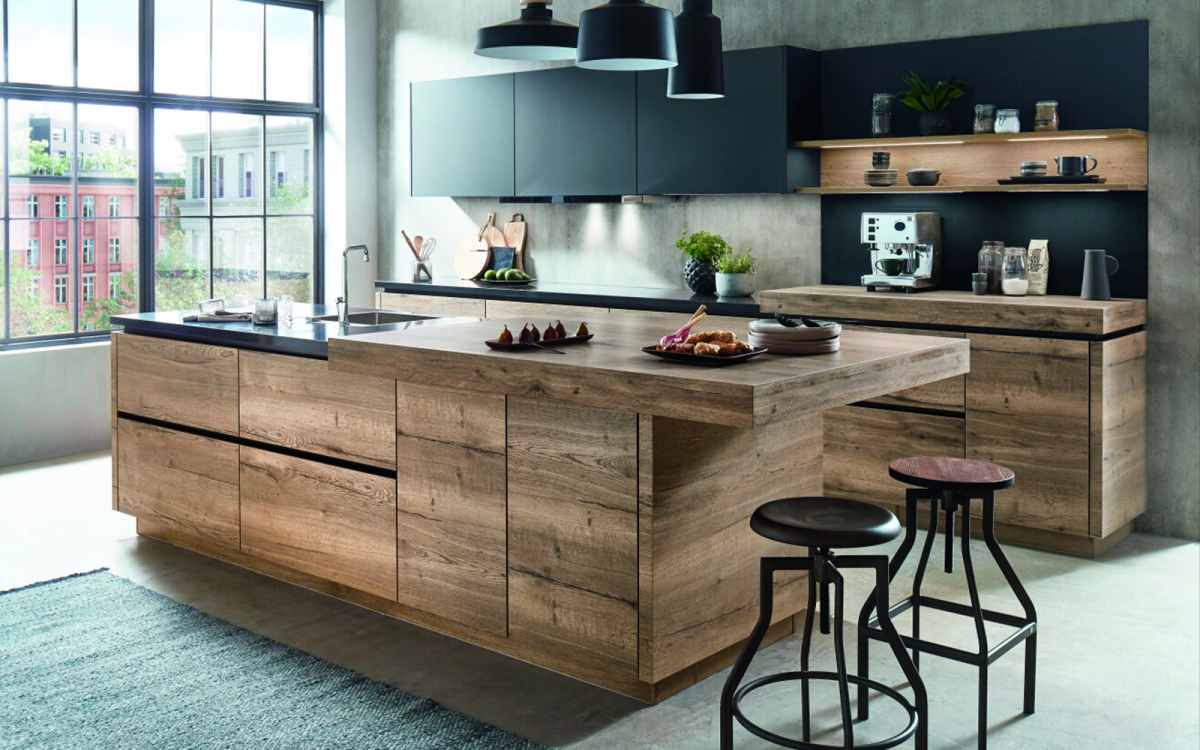 Alors oui, l’évolution de nos modèles repose sur la création d’hybrides nécessitant plusieurs matériaux, mais la conception de nouveaux projets est également le résultat de nouveaux comportements consommateurs. Aujourd’hui, nombreuses sont les cuisines qui contiennent un îlot pour faciliter le quotidien en cuisine. Notre modèle HAVANA décor chêne ancien barrique est donc le pont parfait entre tradition et nouveaux besoins, puisqu’elle arbore du chêne sur ses façades et son plan de travail tout en favorisant une implantation tendance et ergonomique : l’îlot central.