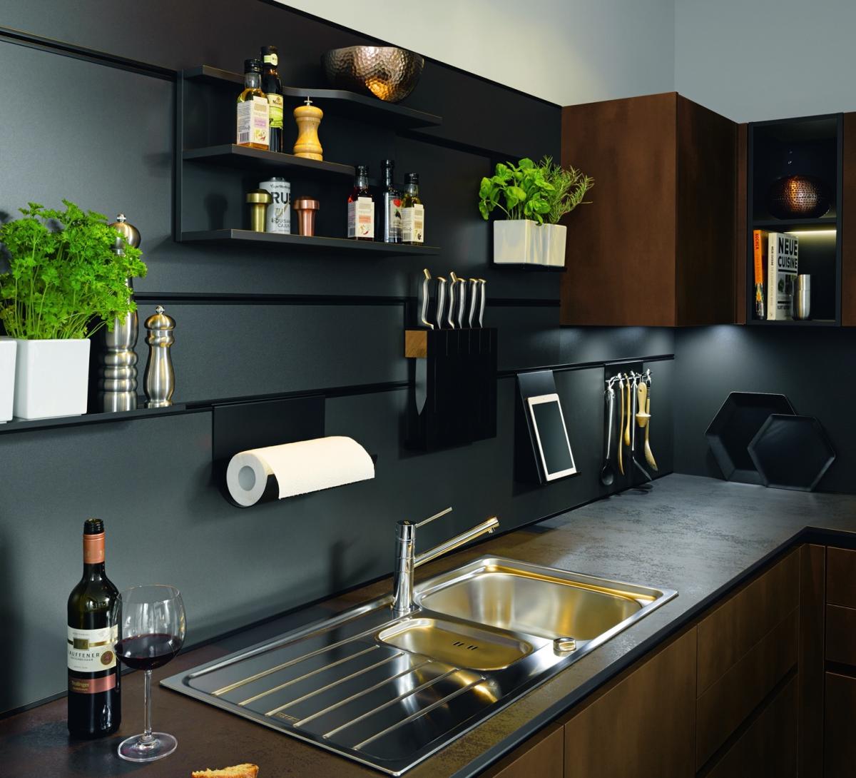 Sous le plan de travail, privilégiez les grands placards pour ranger appareils et objets encombrants, les bacs à ustensiles ainsi qu’un espace pour les planches à découper. Côté zone de stockage, on adopte les tiroirs compartimentés coulissants pour les couverts et les placards à étagères pour disposer la vaisselle et les réserves de nourriture. Vous pouvez aussi opter pour un rack de suspension, idéal pour les verres à pied. Près de la zone de cuisson, installez des étagères à épices, une barre métallique pour suspendre quelques ustensiles et éventuellement un petit tableau magnétique pour afficher vos recettes. Ingénieux, pas vrai ?