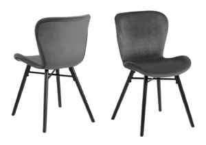Chaise de salle à manger Batilda, tissu Vic gris foncé, piètement en bois d’hévéa laqué noir mat